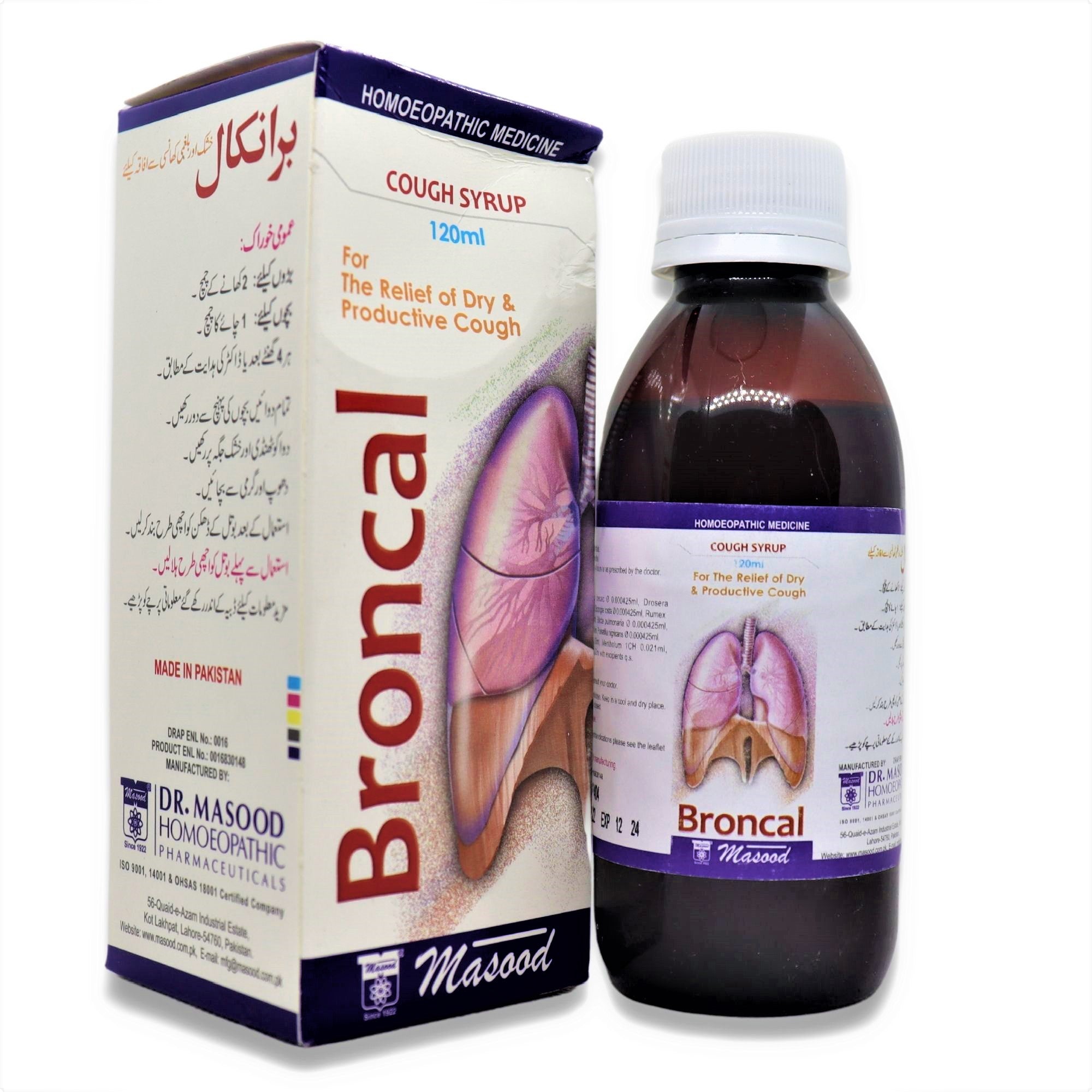 The Broncal cough syrup by Dr. Masood Homeopathic Pharma is an effective remedy for both dry and productive coughs.